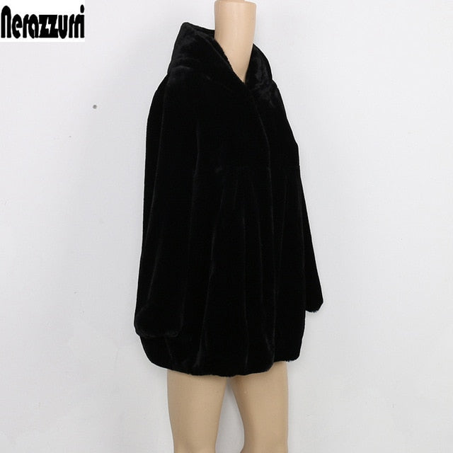 Lambs wool Coat Faux Fur Coat With Hood High Waist Fashion Slim Black Red Pink Faux